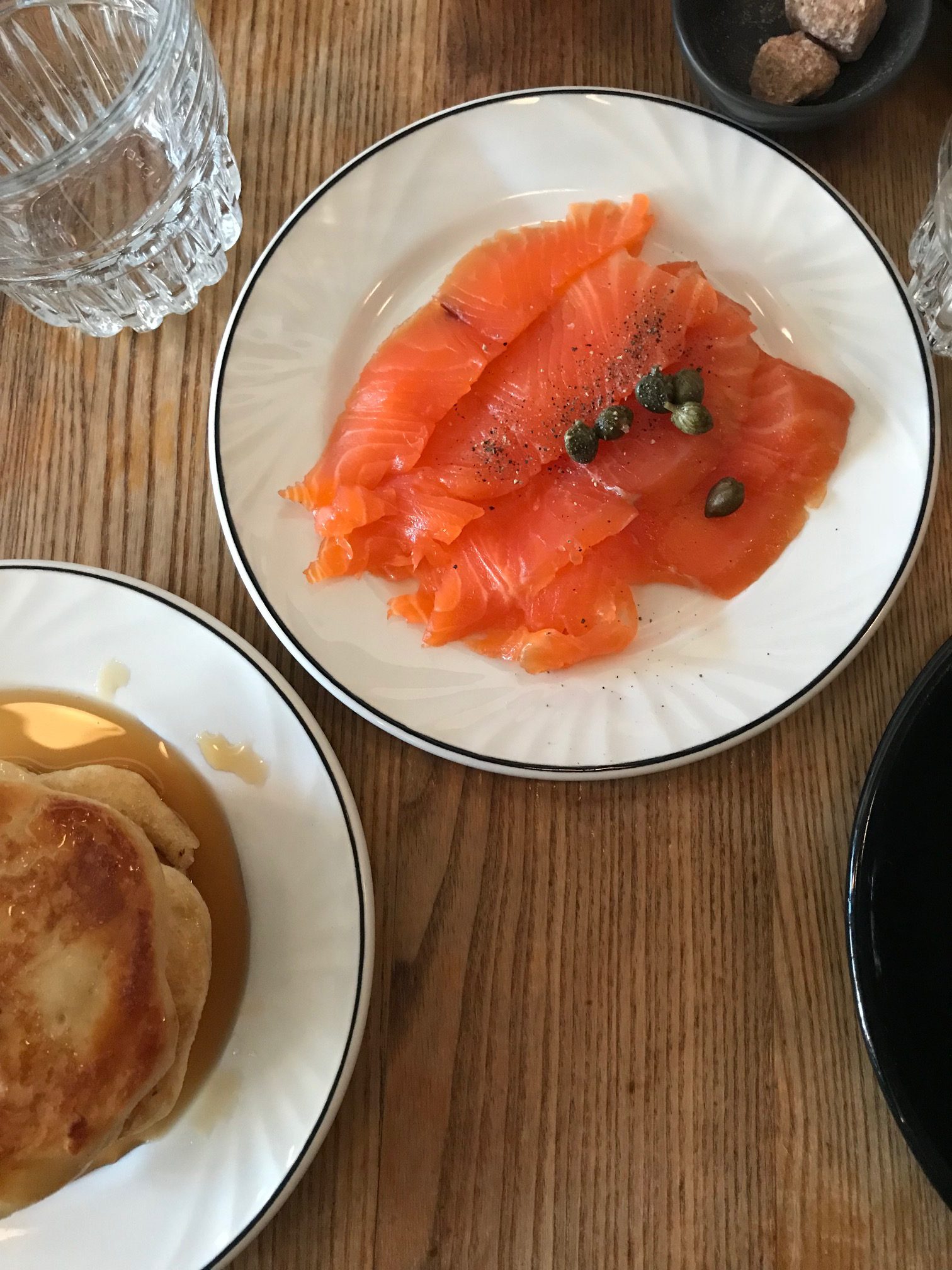 Saturday, Breakfast at Larry’s. We decided to go for a short run from our neighborhood to Mile End, and reward our efforts with breakfast at Larry’s, about 2.5 miles away. When I was helping out in the Bon Appetit offices a few months ago, I edited a travel story about Montreal where the hilarious Tyler Kord described Larry’s as the kind of place that you’d have to wait for hours to get into if it was in Brooklyn or Silver Lake. Even super early on a Saturday there were college-age kids on laptops and one reading a literary journal at a table by the window. The coffee was strong, the menu was simple, and though I felt guilty about not eating a bagel in the land of bagels (they didn’t sell any) I recovered as soon as my Pikalet arrived. It was like a mini corn pancake that the server recommended pairing with smoked salmon and also syrup. Good grief. No regrets on my end. (Note: Larry’s is also open for lunch and dinner and the bar looked intimate and fun; highly recommend trying that out.)
