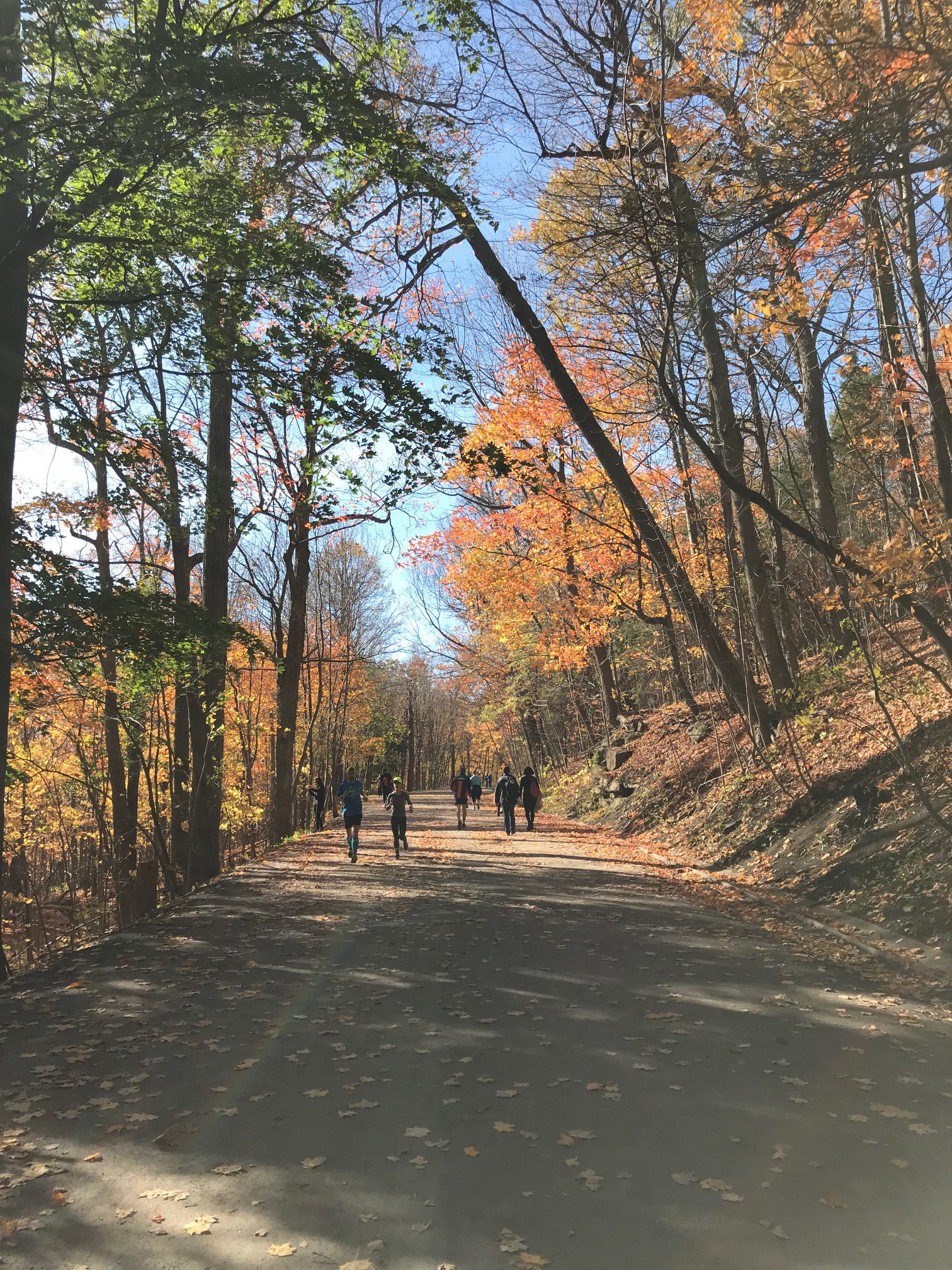 Saturday, Late Morning Even though the Parc du Mont-Royal was a quick walk from Larry’s, we Ubered back to the hotel to shower (remember, we were in our running clothes; not the smartest planning) only to head right back to the same neighborhood (Mile End, Plateau, the Park) to start our exploring. We worried that the end of October was going to be too late to get the full fall foliage effect, but the Frederick Law Olmsted-designed park was golden and glorious. In the winter, you can snowshoe and tube and and ice skate in the park, but we were happy people-watching…
