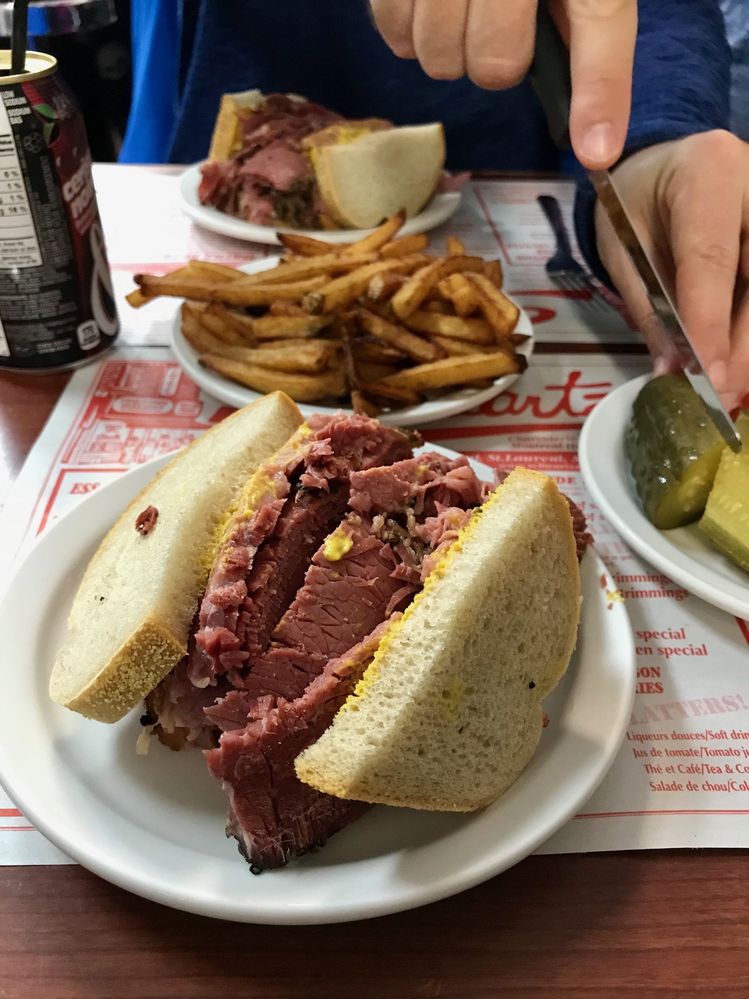 Lunch at Schwartz’s The oldest Jewish deli in Montreal, famous for their smoked meat sandwiches, was on literally every Montreal Recommendation list we came across. To the point where we wondered if it was going to be too touristy. I’m glad we ignored that voice of doubt and endured the legendary line anyway. Check out the sky by the way.