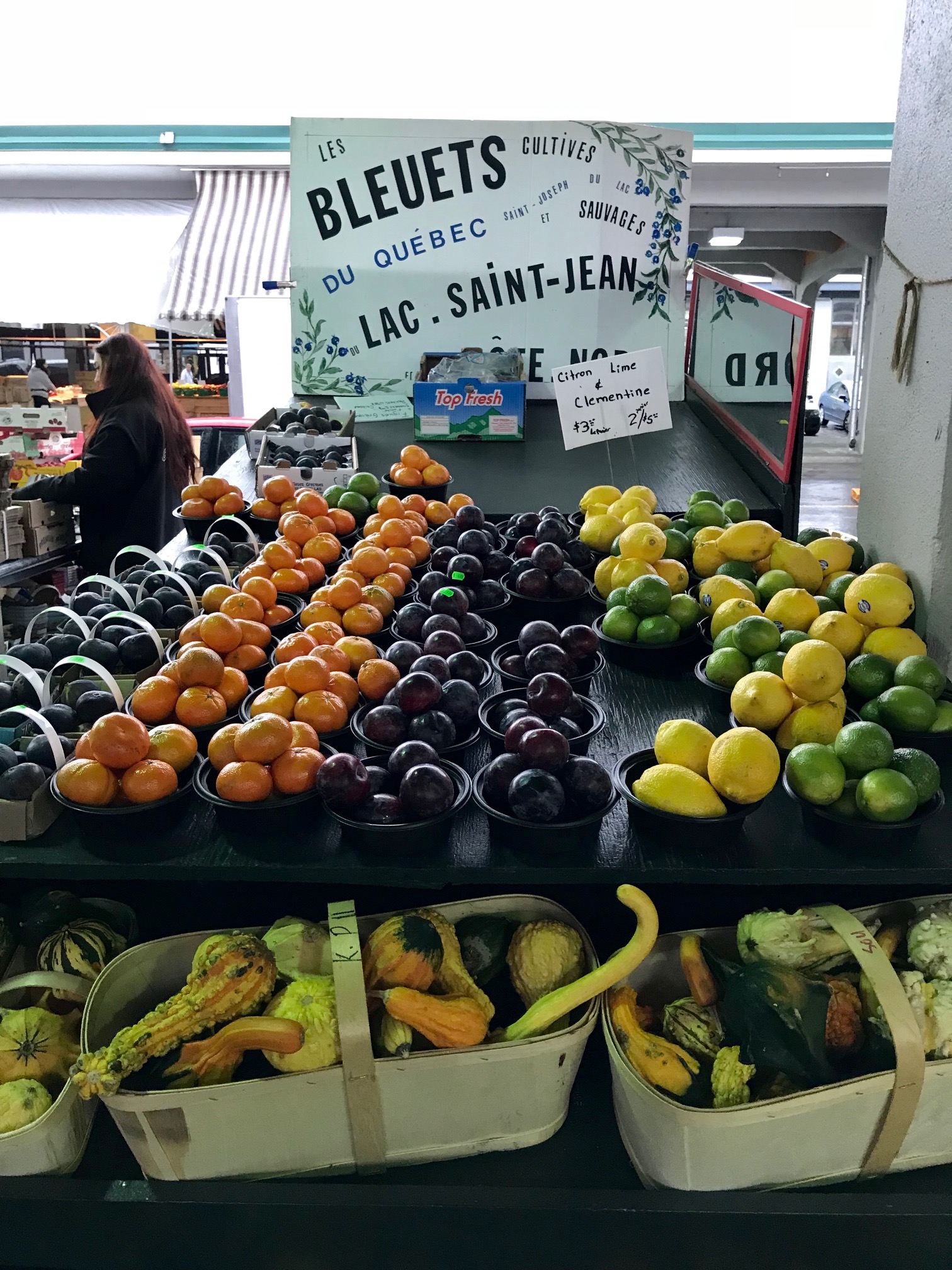 Sunday Morning We needed to leave for the airport by 11:00 which meant we had just enough time to grab a coffee at Cafe Olimpico in the lobby (only an outpost; the main one is in Mile End) then hit the massive Jean-Talon market in Little Italy, about a 20-minute drive from the hotel. Our weather luck had run out and it was pouring, but we figured we’d try to snag some last-minute food gifts for the kids and all the friends who were driving our kids everywhere while we were away. We were inside a beautiful little chocolate shop when Andy got an alert from Air Canada: Due to weather, your flight has been canceled. They rebooked us for a flight that wouldn’t have gotten us home at midnight, so we sat at one of the picnic tables next to a giant display of fall apples and booked a rental car. An hour later we were in a compact economy on 87 south, barreling home to New York. It was a six-hour rainy drive, but it served mainly to remind us how great a road trip it would make next summer when we return with the kids. There’s no way that’s not happening. Especially since we never ate poutine.