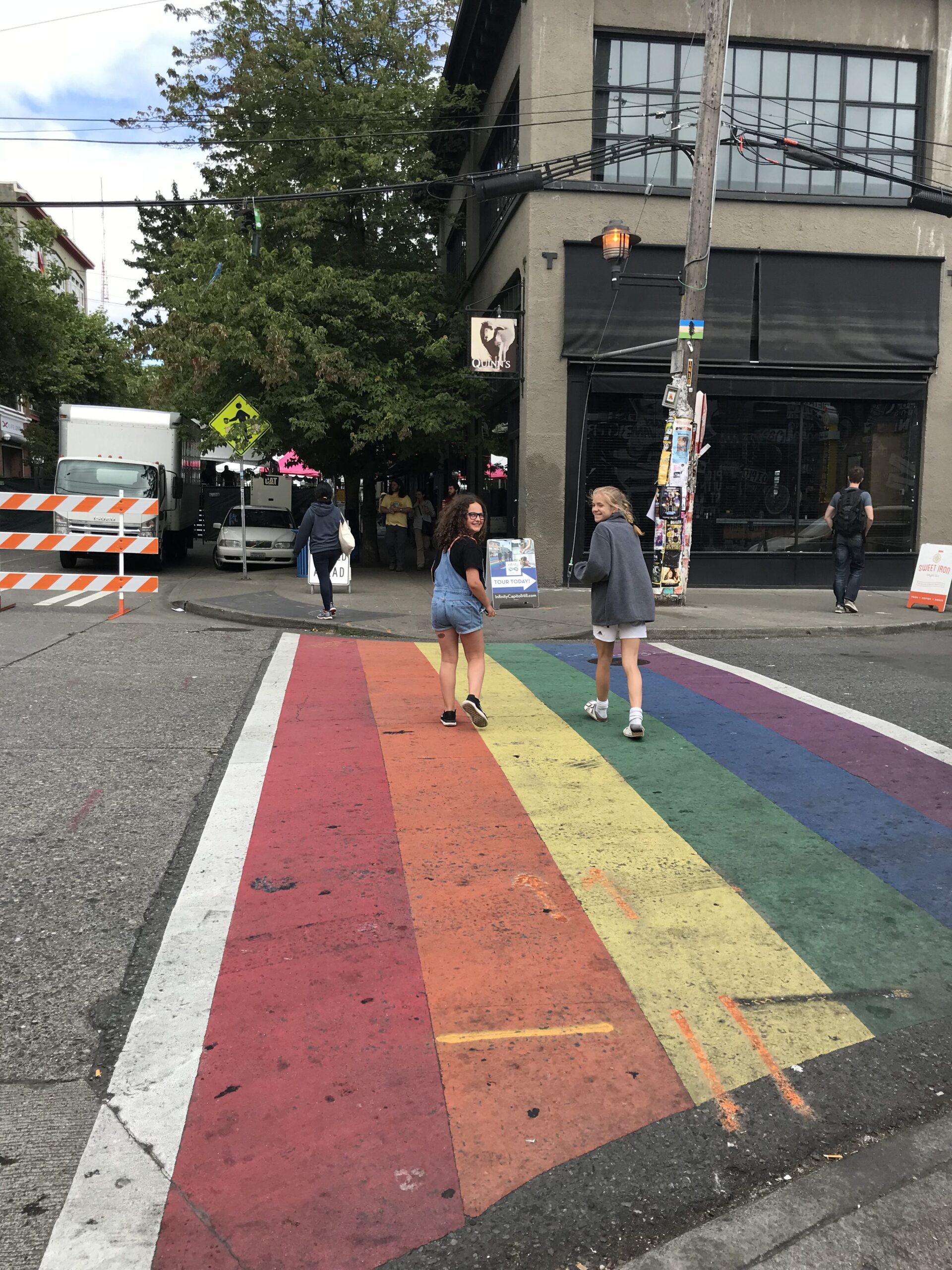 1:45 It was Pride Month! We loved the rainbow crosswalks which made for especially good instagram posts. (That’s me with our friend Maylie. And this was at the intersection of East Pine and 10th Ave.)