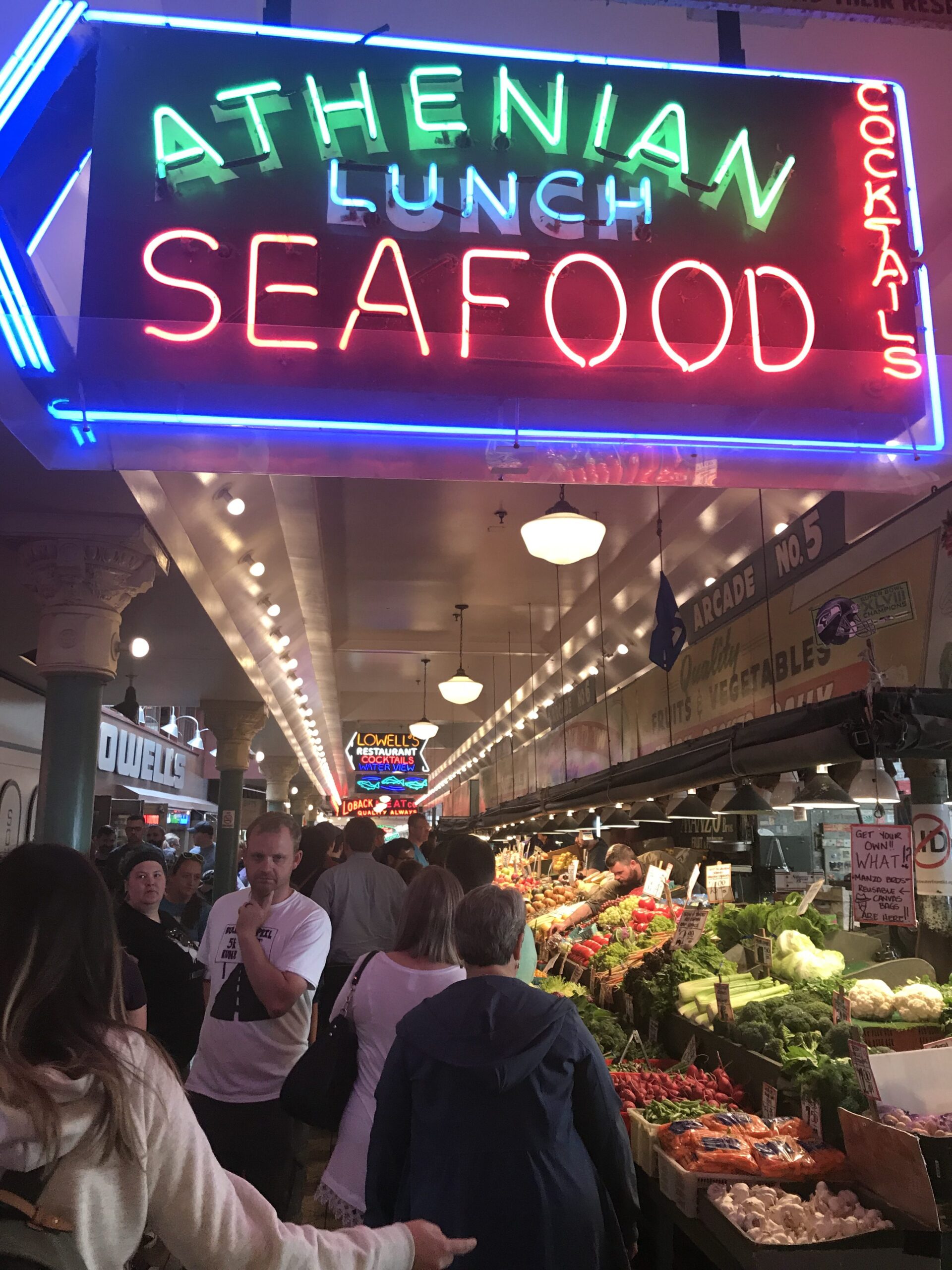 4:00 [Jenny] We hadn’t planned on it, but we decided to hit Pike Place Market (because: of course!) on our way home to Ballard from Capitol Hill. We bought fruit and a lovely flower arrangement for our lovely hosts, but for the most part we just walked up and down the long hallways and gaped at the offerings. Maybe the most amazing part was that I got a parking spot on Pike Place right in the middle of everything (across from the flagship Starbucks.) I kept looking at the spot and looking at the sign saying This is too good to be true (once a New Yorker always a New Yorker, I guess) but it was actually true. Over a month later, I’m still on a high from it.