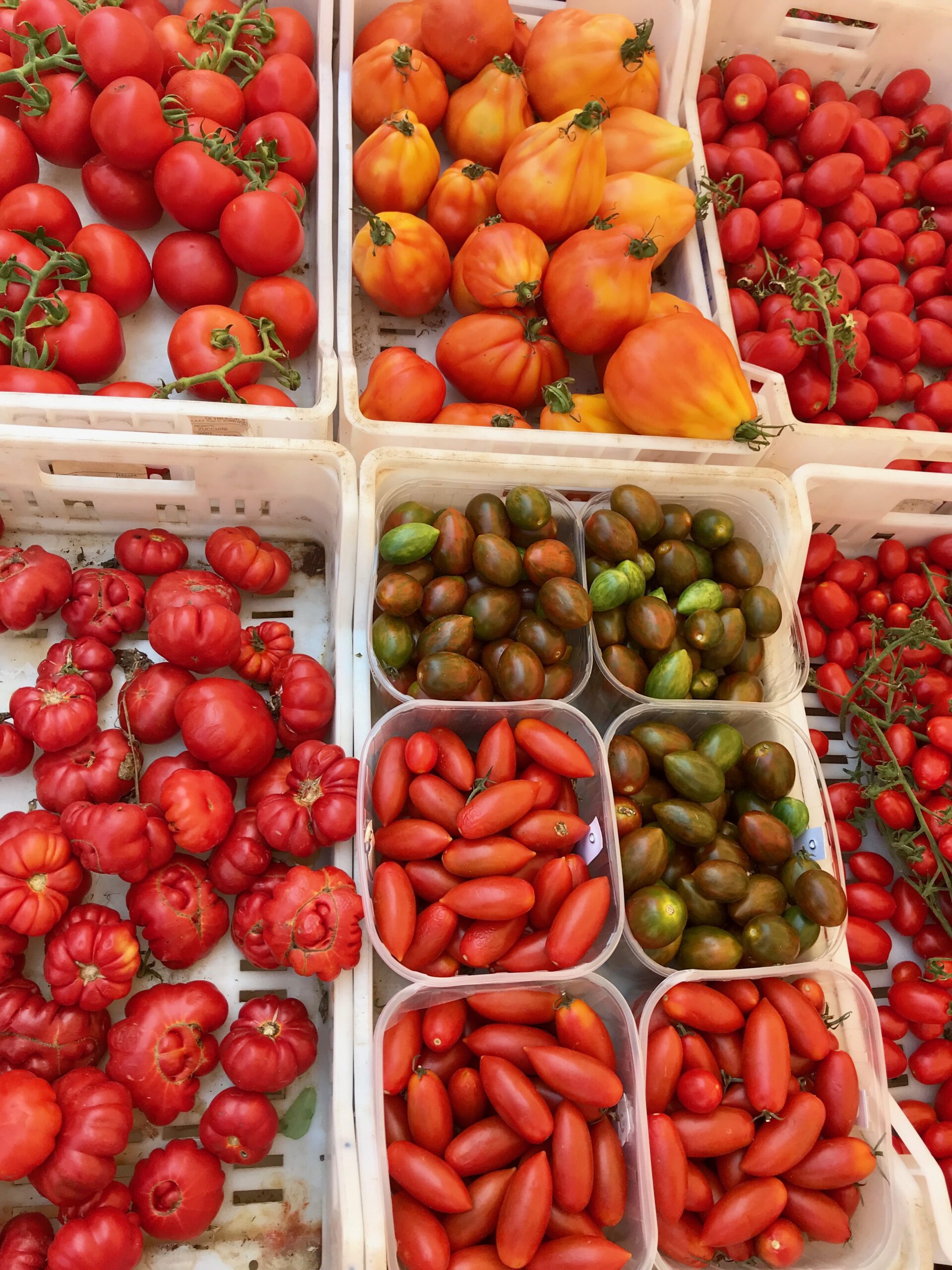 …while we were weaving our way around the charming streets of Trastevere, we came upon an outdoor market and picked up some greens and some tomatoes. Although “some tomatoes” doesn’t exactly do that purchase justice. They were deep red — like that deep red you only get for, like, three minutes in New York in late August — and aromatic and perfumey even from a foot away.