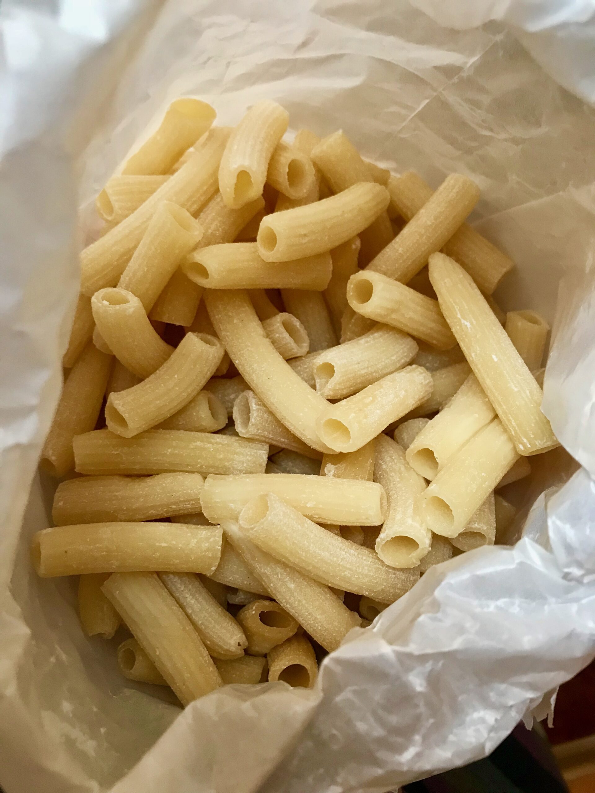 …a pound or so of this beautiful rigatoni, which they were making behind the counter. In Abby’s words, “You know it’s fresh because they are all different lengths.” Next…