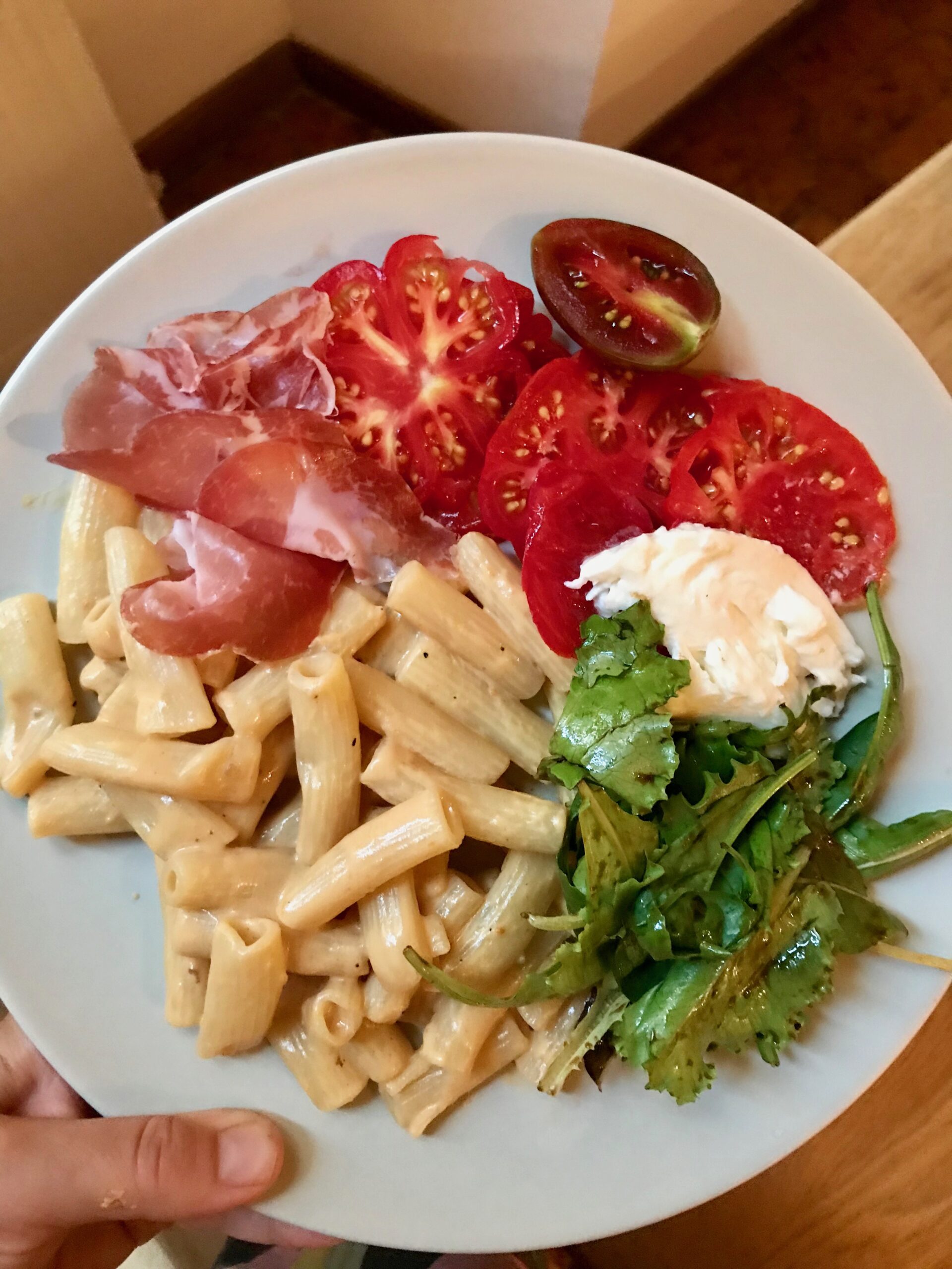 Forgive the radio silence over on my end. Those of you who follow me on instagram likely know by now that we are traveling in Italy (Sicily via Rome) and eating our weight in pasta, gelato, and pizza everyday. It’s the trip of a lifetime, and I know I say that every time we travel, but what can I say? We have only a few summers left with the kids, and that adds a layer of appreciation to every trip we take. Anyway, you can be sure you’ll be reading a detailed play-by-play of the trip soon enough, but for now I wanted to share two meals we’ve made at home, by which I mean, in our airbnb kitchen’s that essentially come equipped with salt and pepper.