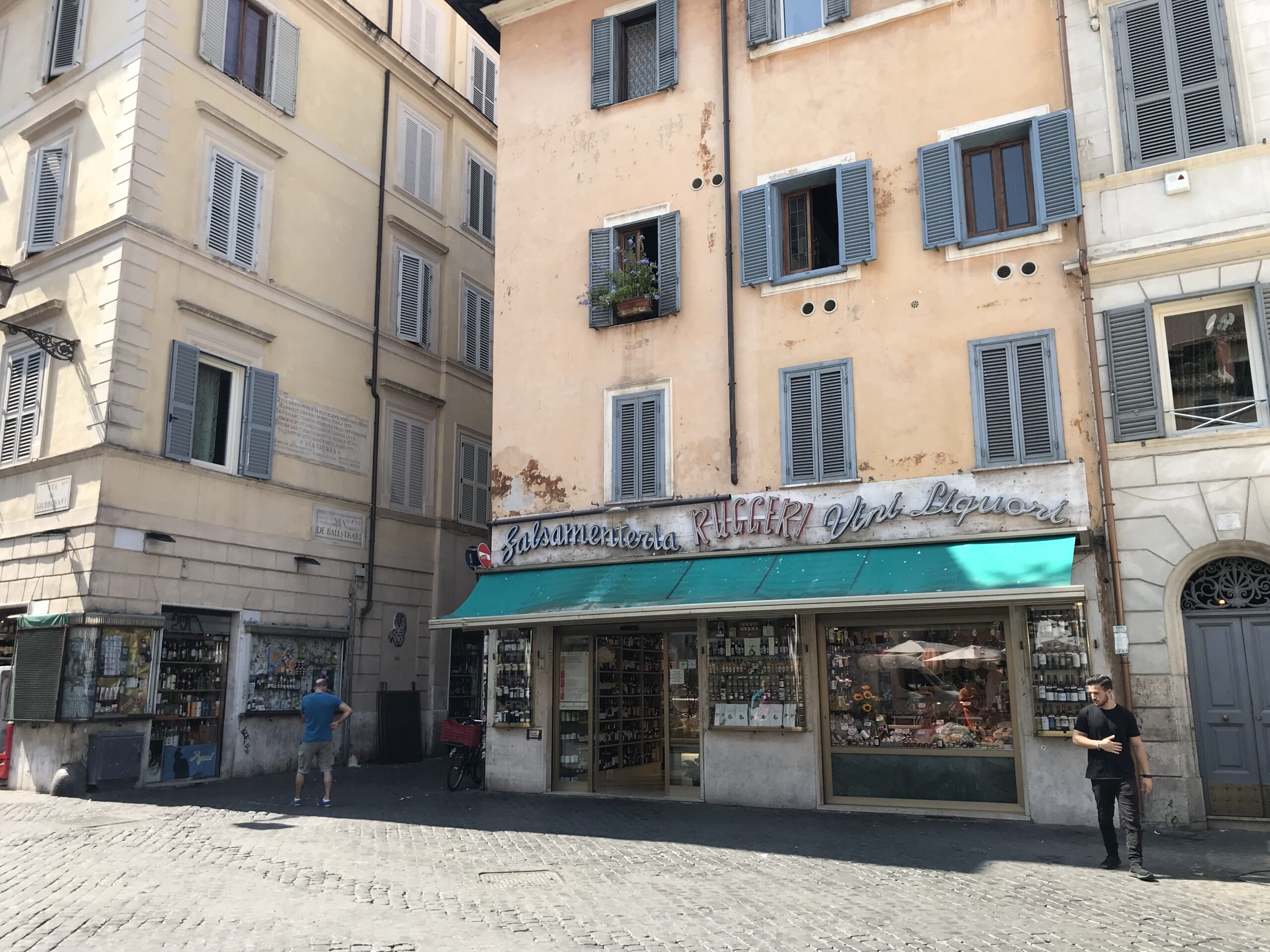 The first was in Rome. I think this was the day we clocked over 10 miles on Phoebe’s Garmin watch, and we decided we’d make our own spritzes and cook in, because we had a huge lunch and because…well, why am I explaining myself? You guys know we love to cook in our own kitchen we we travel. A big part of the fun is collecting things as we wander. And luckily on this day we were wandering through the Mercato Testaccio, a huge market that sells everything from produce and meat and fish to sandwiches and pizza and salads. (Or at least that’s what I read, not saw, since it was August, many of the vendors were shuttered.) After I inhaled a sausage and spinach sandwich from Mordi & Vai, I looked across the aisle and bought…