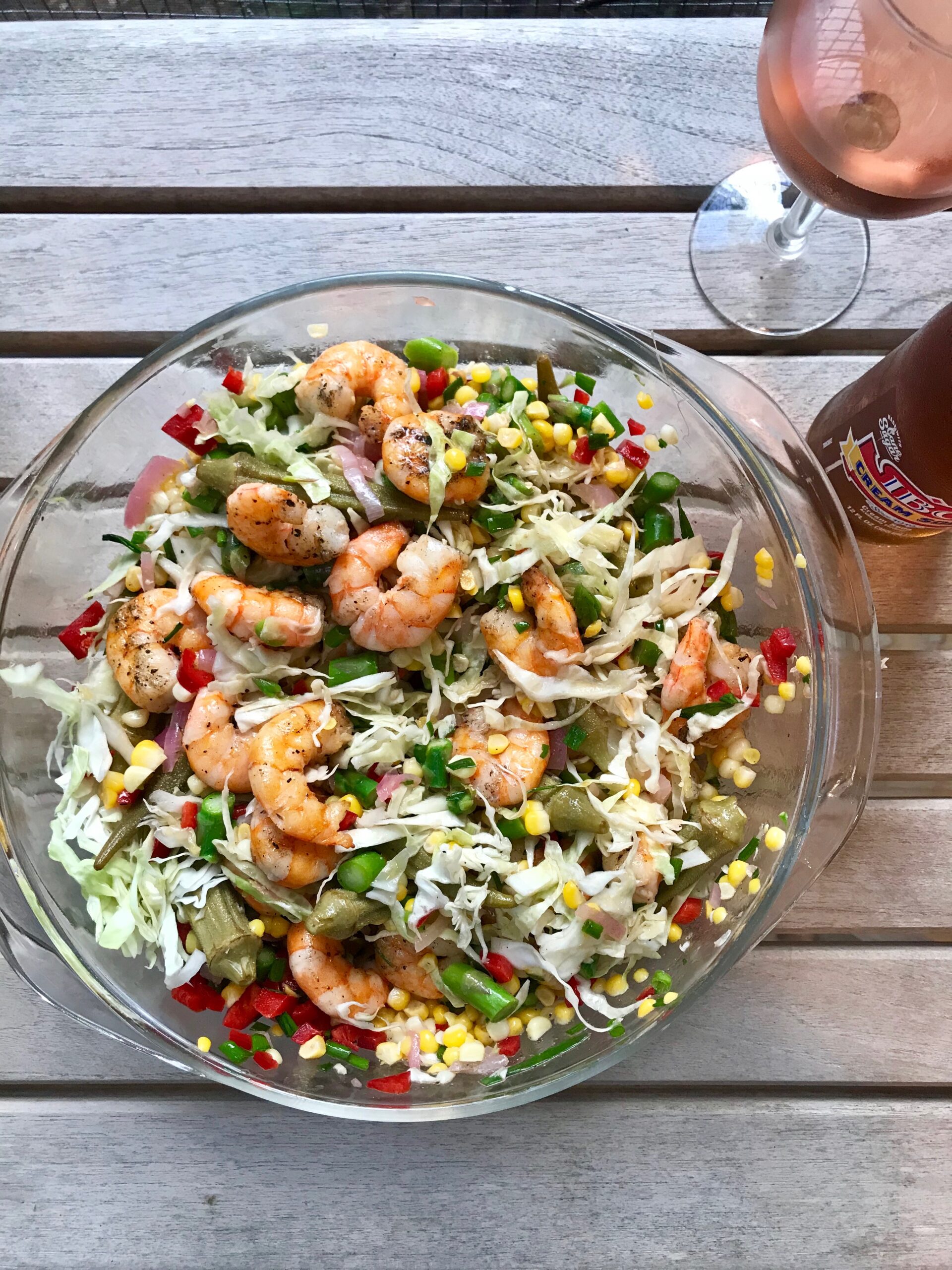Summer has arrived a little early in my house — as usual, we are spending spring break down in Kiawah, South Carolina at my in-law’s place, and it has not taken us long to get into vacation rhythm. That goes for the bike riding and general sun-lizarding, but mostly I’m talking about dinner-making, which is to say grilling. Why do I feel like if I lived in warm weather all year long that I would never have a problem with coming up with ideas for dinner? I’d make some version of what you’re looking at up there every single night: some sort of enormous salad with crispy, fresh, flavorful in-season vegetables, plus a few pickled things, plus a grilled protein, whether that’s shrimp (above) or salmon for salmon salad or chicken for this kind of thing (if it was a meat kind of night) plus a bracing, tangy vinaigrette. There’s a great market down here called Blackbird and they sell high-quality everything, from local produce and seafood to Southern specialties like grits and red pepper jelly. Since we are in South Carolina, I went a little crazy on the shrimp purchasing — when Andy was preparing it for the grill I was like “Maybe we don’t need to make it all, that looks like a lot.” But he did and it’s a good thing, because it was all gone so fast and when dinner was over the four of us sat around on the screened porch and did what we always do: discussed why we can’t be on vacation all year long.