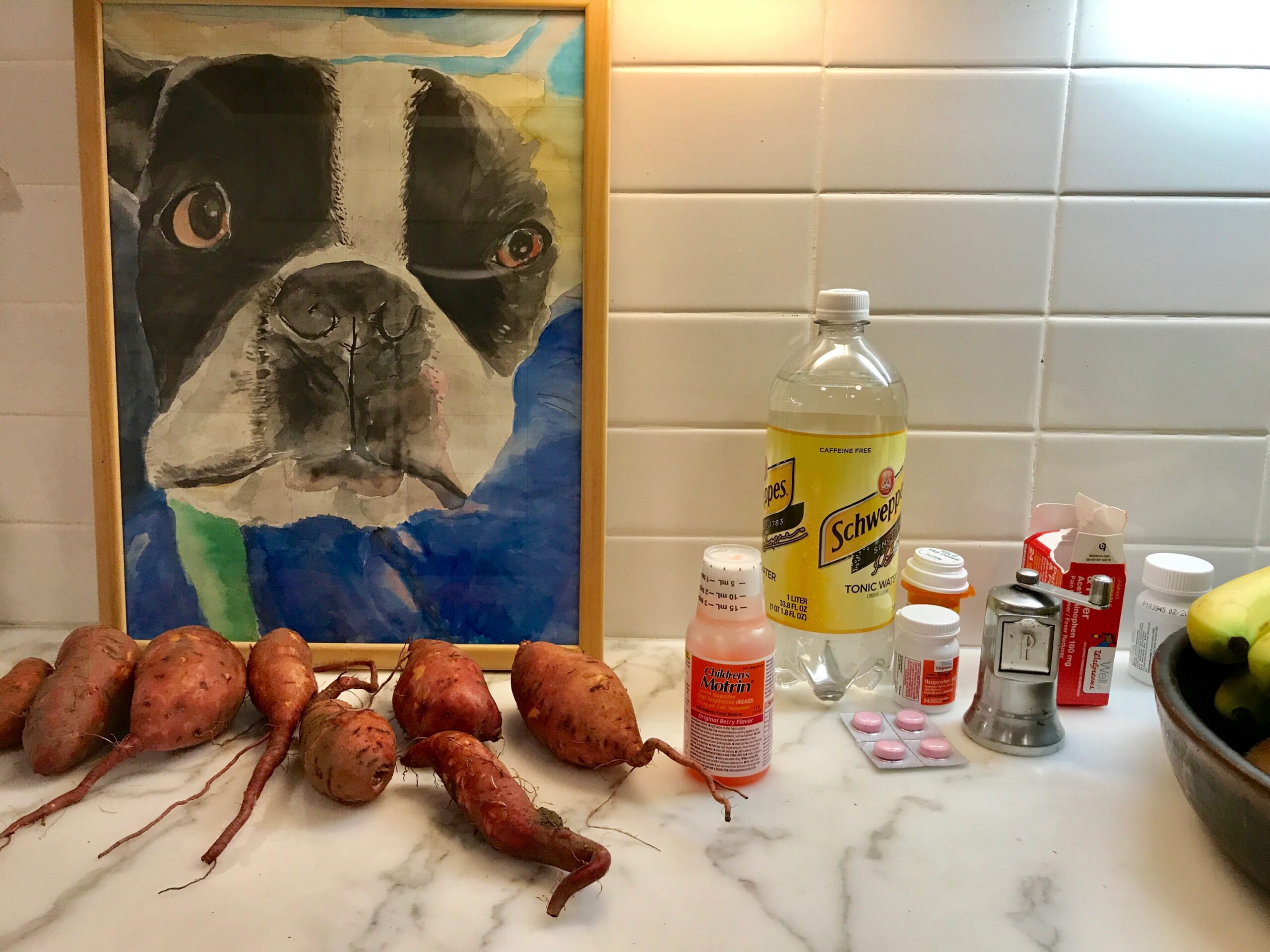 Kitchen Still Life with Medicine. (Missing: Bombay Sapphire.)