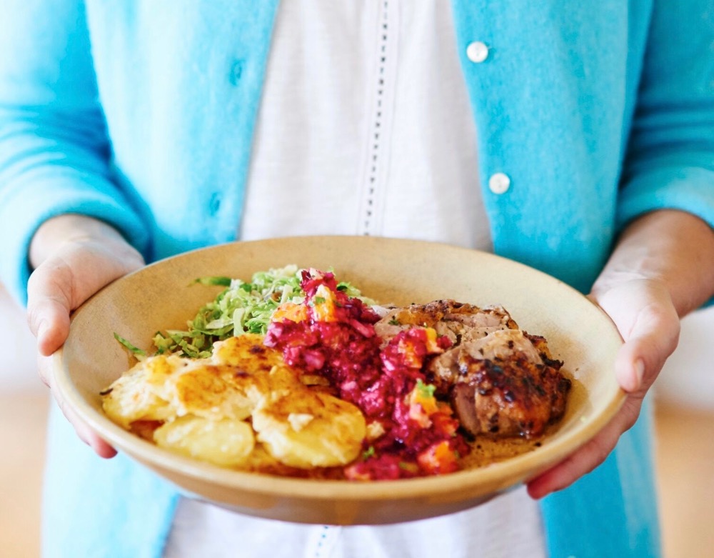 Every year around this time, Andy will turn to me and say something like “I think it’s time to shake things up a little at Thanksgiving.” Mmmm hmmm, I’ll respond, and if I wore glasses, I’d raise my eyeballs over the frames for a sec before turning back to doing what I was doing, which is, most likely reviewing last year’s menu with my mom. It’s not that I am ignoring him, exactly. It’s more that I know myself by now. I’ll spend a lot of time poring over books and websites looking for interesting twists on tradition, only to end up right back at…tradition. Our menu, as outlined in How to Celebrate Everything, is classic, and, I might add, perfect: My Mom’s Herb-Roasted Turkey with Gravy, Confetti Brussels Sprouts with Bacon and Raisins, Sausage and Apple Stuffing, Cranberry Relish, Potato Gratin with Gruyere, Horseradish Mashed Potatoes (yes, two potato recipes, need I explain?) and my mom’s world-famous Chocolate Pudding Pie. We definitely introduce new recipes into the equation (application permitting) but other than that cranberry relish from a few years ago, I can’t remember a dish that was good enough to be permanently entered into the rotation.