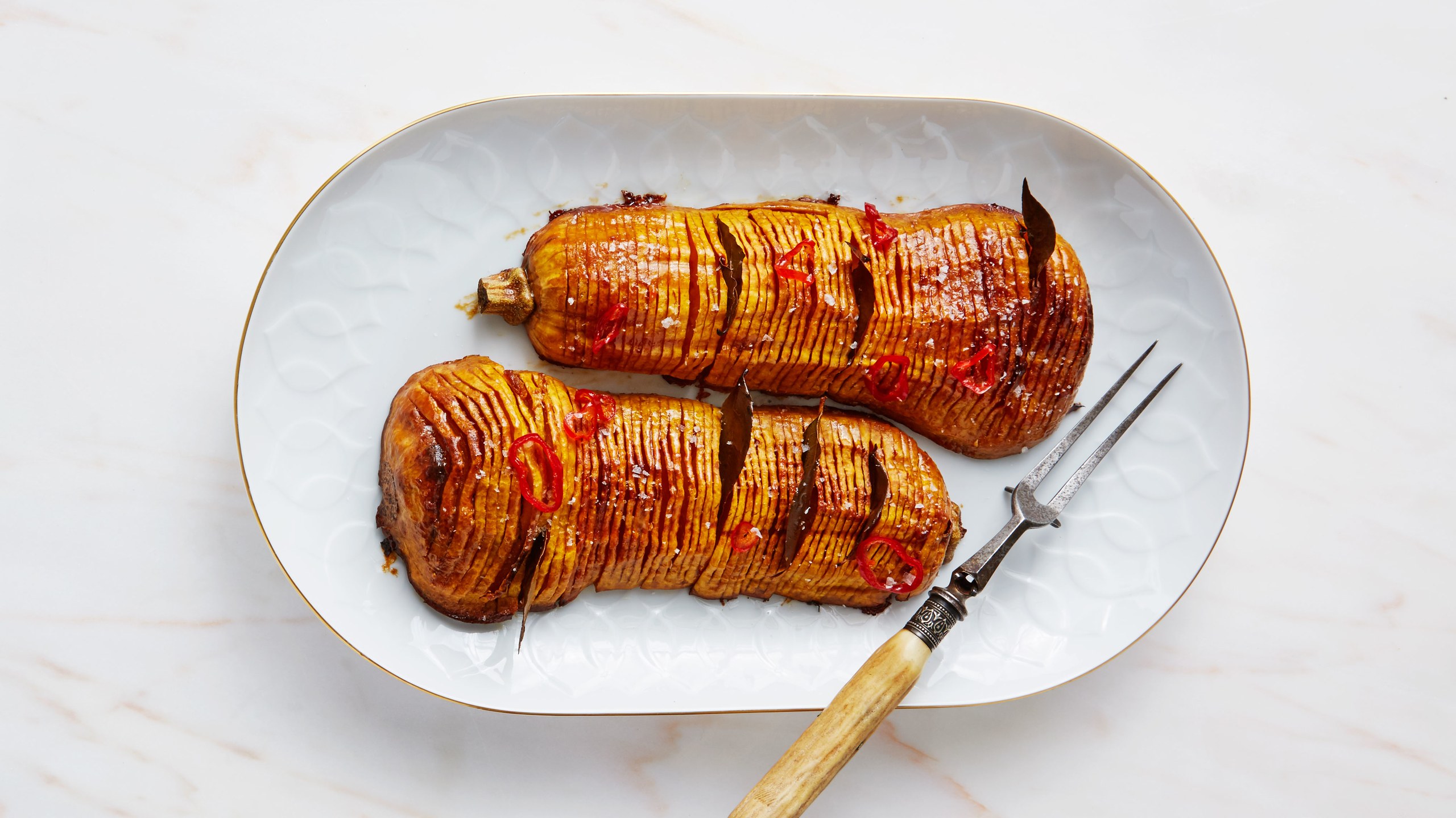 Hasselback Butternut Squash with Bay Leaves (photo credit: Bobbi Lin)