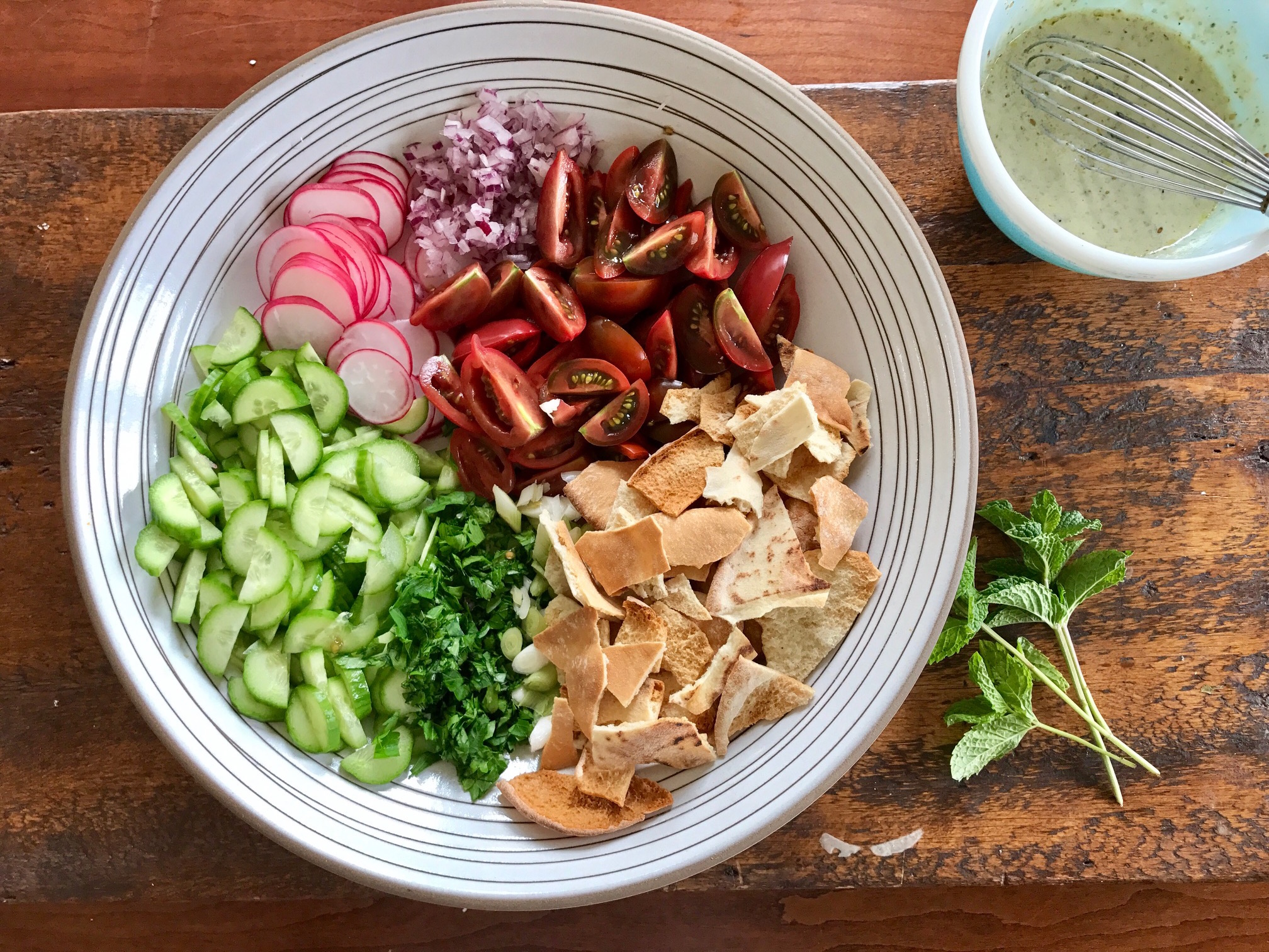 Chopped Rotisserie Chicken Salad with Green Things I owe this habit to my discovery of Nate Appleman’s instagram feed. I never make it the same way twice because it always depends on what straggler vegetables I have lying around. I do, however, pretty reliably drizzle in the Asian vinaigrette. It’s good.