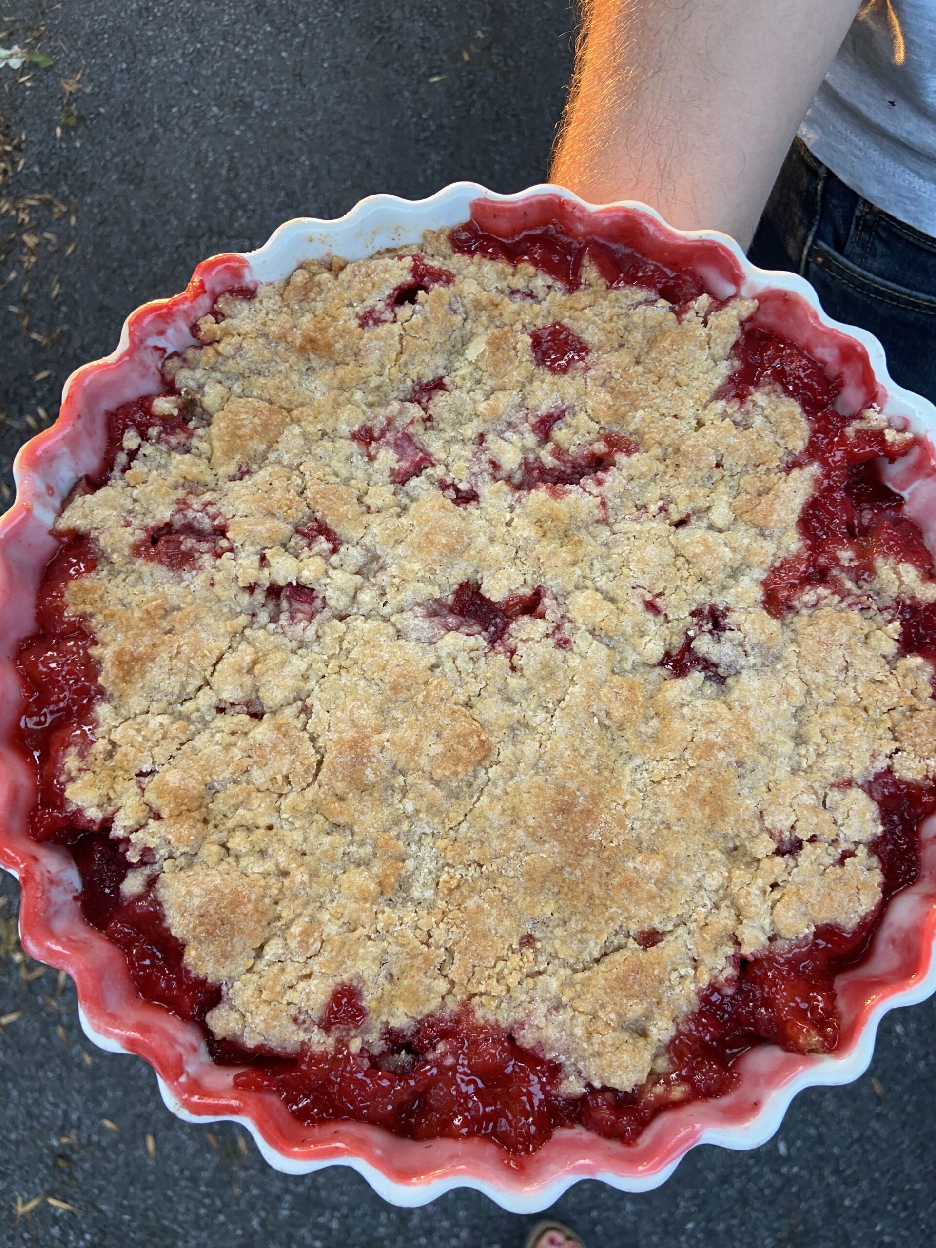This looks/sounds divine! I made a similar crisp this morning for our weekend trip. I used 3 peaches, a bag of frozen blueberries, 2 cups of rhubarb, and two apples because that’s what I had at hand. I hope it’s good!!