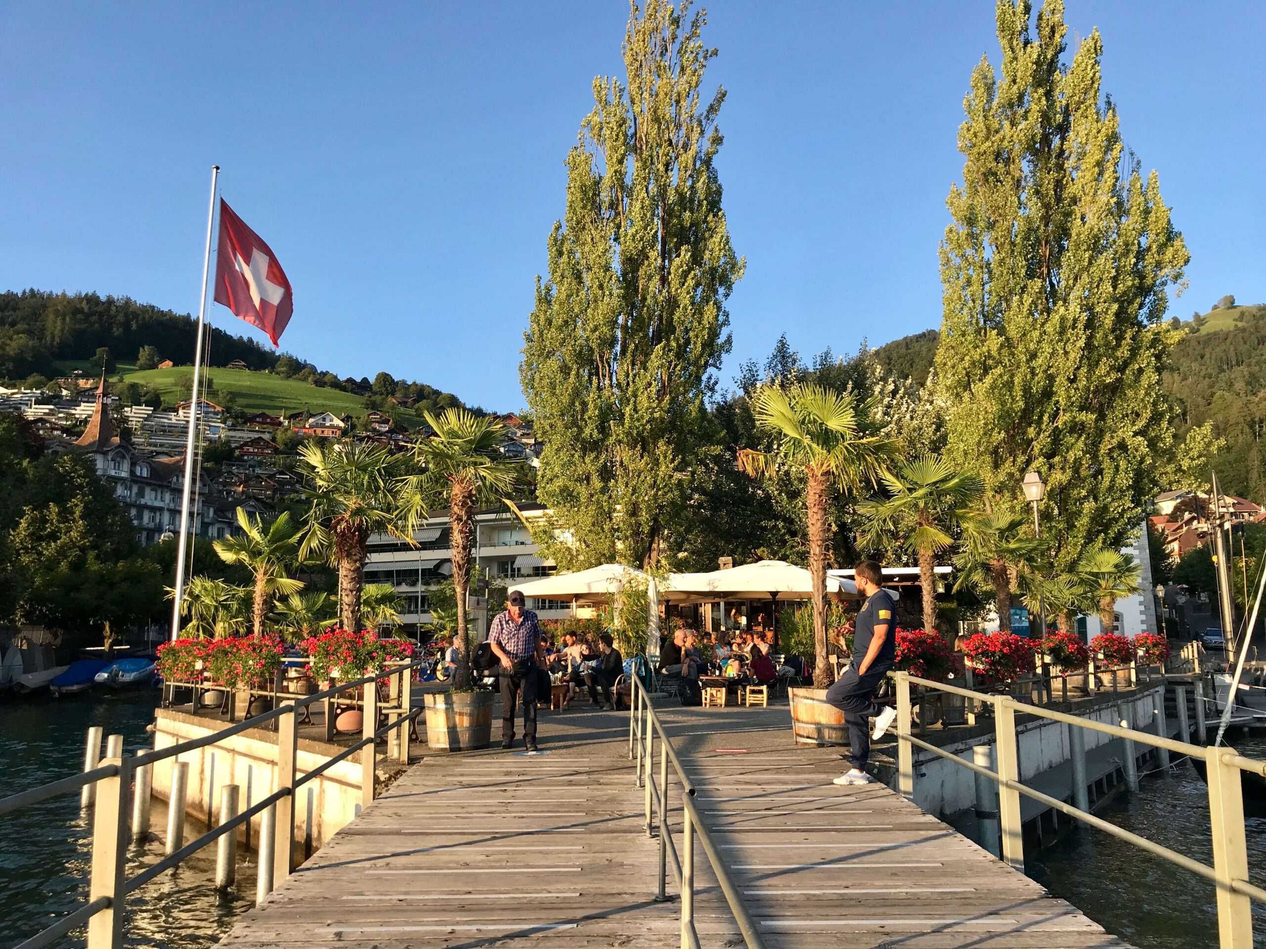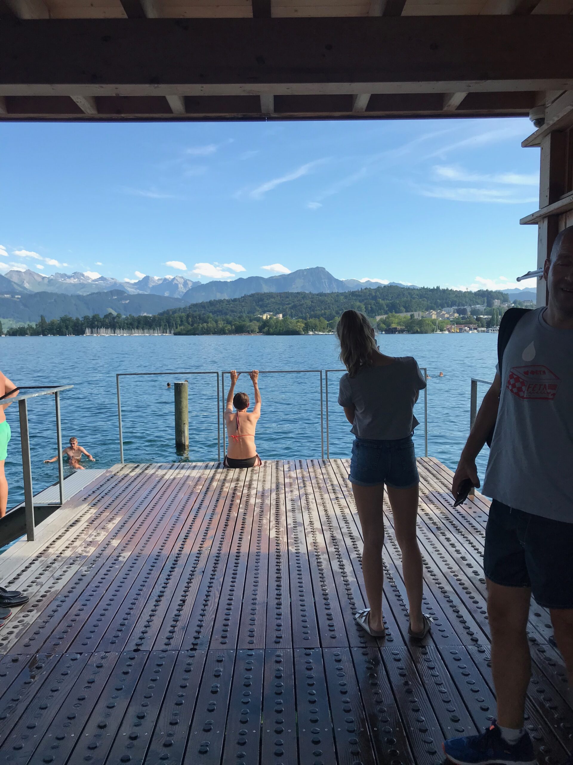 This was Seebad Luzern. We paid about 20 CHF (a little more than $20) for the whole family to spend a few hours jumping off the dock, sitting in the sun, reading on the deck, and later, enjoying some snacks and spritzes on the deck.