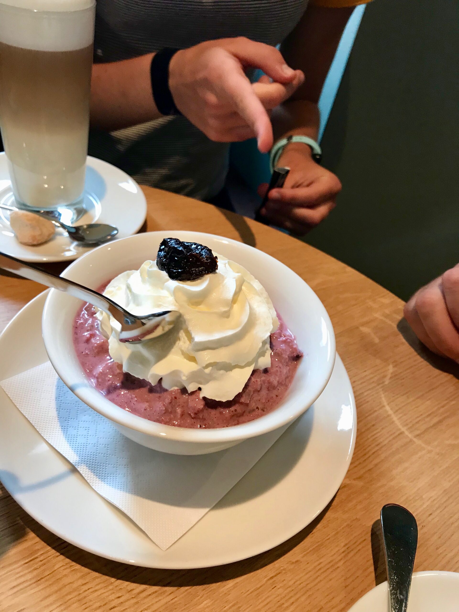 #11 Bircher Muesli I’ve written about our family’s love of Muesli, but I definitely have not chronicled our family’s love of overnight Bircher Museli, which in Switzerland, is served way more like a porridgey yogurt than I am used to. My favorite kind was tangy (as opposed to sweet) and contained a generous amount of shaved apples. They sold little to-go cups of it in every backeri and Phoebe declared the most recent one her favorite every time. Naturally she gave the blue ribbon to the last one she ate in Zurich, at Sprüngli, a fancy destination spot more well known for its chocolate and pastries. Eventually we will try to make our own, but for now we’re doctoring European-style muesli from Bob’s Red Mill. The night before we combine a half-cup of muesli with milk (enough to cover but not submerge), then stir in a tablespoon of Greek yogurt and a squeeze of honey. In the morning we throw in shredded apples or whatever fruit is lying around.