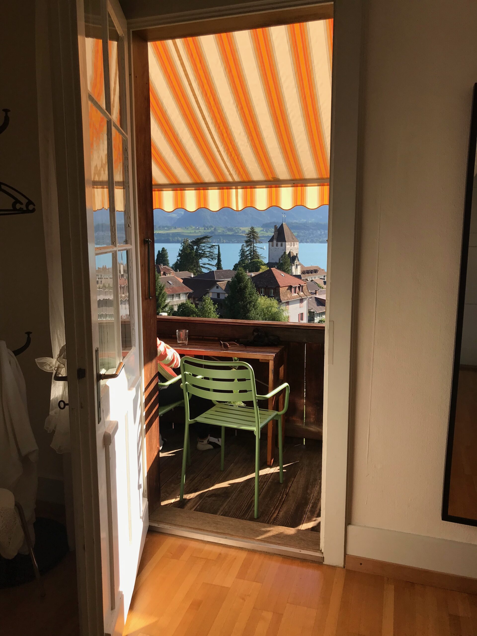 I managed to squeeze in two glorious swims at the Strandbad Oberhofen, a 10-minute walk from our Oberhofen airbnb on Lake Thun, and the swimming was FREE. There were diving boards, a cordoned off section of the lake for babies and little kids, and a cafe where you could order spritzes and beer and snacks, a well-manicured green lawn, where locals played cards, read books, had picnics. At one point I looked around and realized that not one person was looking at a phone or listening to something on their airpods. A month later, back in the real world, I find myself trying to conjure the feeling of being at that spot, swimming in that crisp, beautiful water.