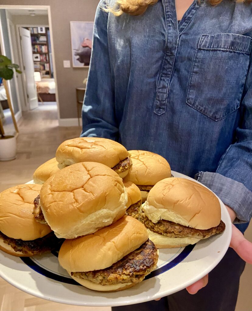Shape the mixture into 8 very thin 4-inch patties—think California-style. They will probably look mushy and unappetizing, and I implore you not to let any of your diners watch this part, but press on! (Also, just like with regular burgers, it’s easier to shape them when your hands are slightly wet.)
