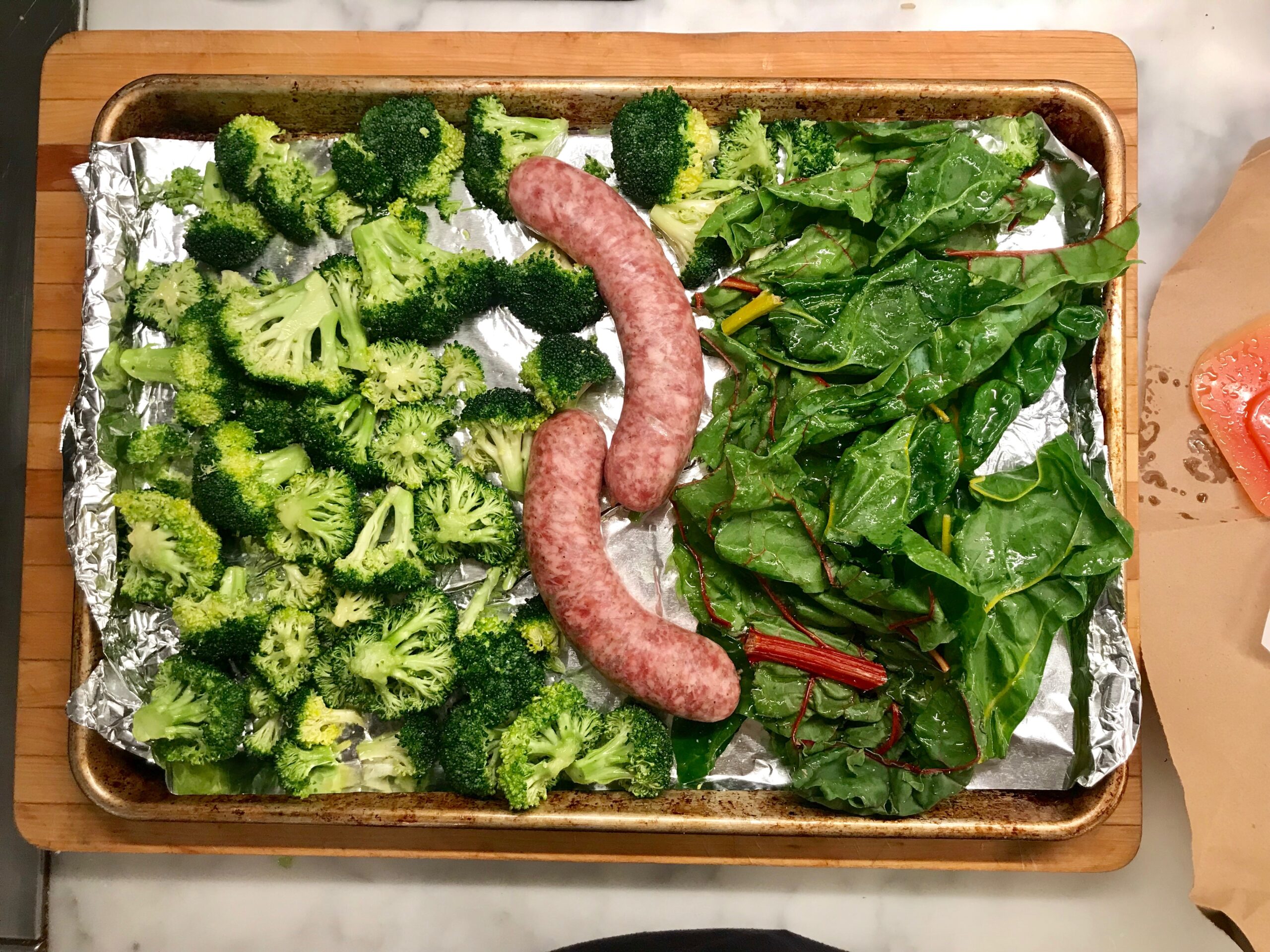 Pasta with Sheet Pan Broccoli, Greens, and Optional Sausage (above)